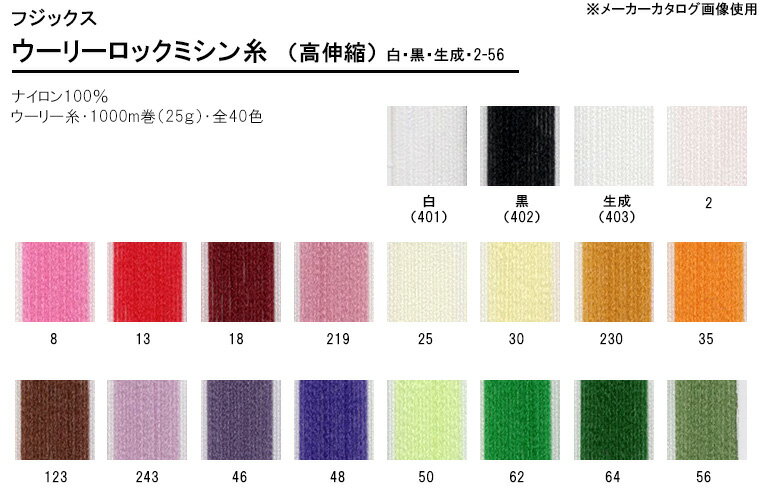 【イーグルス感謝祭はポイント3倍】ウーリーロックミシン糸(白・黒・生成・2-56番)※カタログ掲載順ニットや伸縮性のある布地用下糸/1 全40色【フジックス】【手芸材料】 5872
