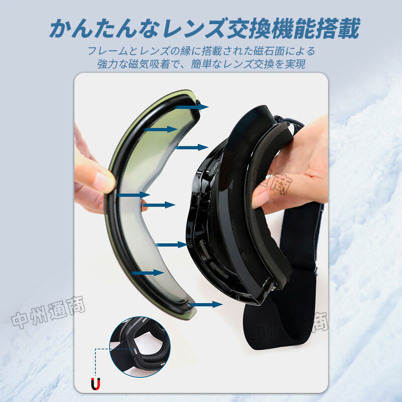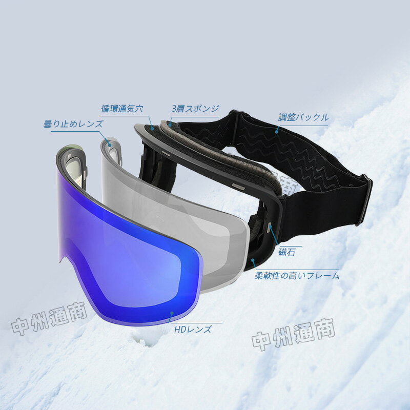 スキーゴーグル 磁気レンズ メガネ対応 スノーゴーグル 大人 スノーゴーグル 眼鏡対応 フレームレス 曇り止め 広い視界 UVカット 紫外線カット 男女兼用 収納ケース メガネ使用OK 冬 スキー