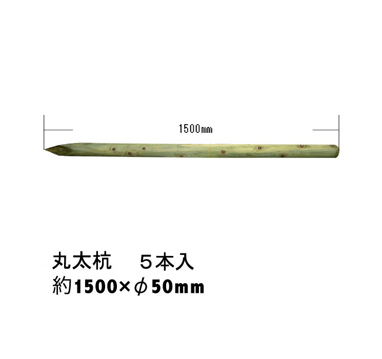 木杭 国産 杉 丸太杭【防腐防蟻処理済】しっかり&長持ち 約1500mm×φ50mm(5本入り)【植栽/樹木支柱/木杭/丸太杭/ローリング/丸棒杭/公園/ACQ/木材/木/公共/植木支柱/造園/間伐材/ガーデニング】