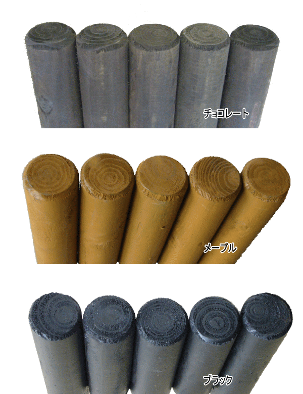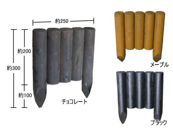 「夢花壇」花壇用連結丸太杭長さ約200mm×φ50mm(5本連結)塗装ありタイプ(チョコレート・メープル・ブラック)【防腐防蟻処理品】【ガーデニング/丸太/杭/囲い/仕切り/土留め/柵/フェンス/国産/杉材/天然木/連杭/ストッパー/防腐】