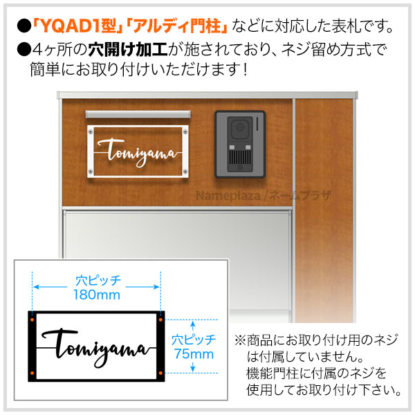 表札 四国化成 アルディ門柱/YQAD1型など対応 機能門柱 切り文字 筆記体 戸建て ステンレス おしゃれ 長方形 4点ビス止め式 SIF-KMIR-WT-N3