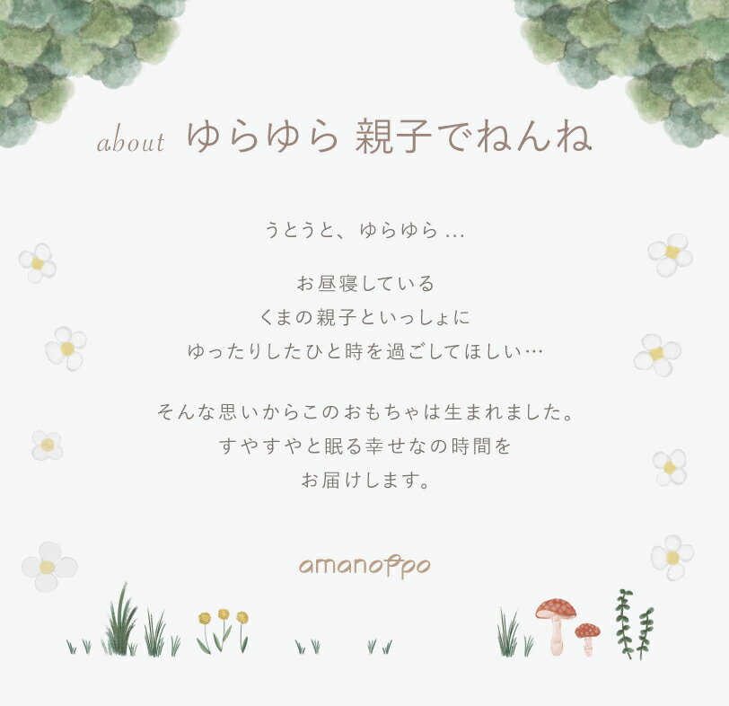 ※クリスマスラッピングをお選びいただいた場合、メッセージカードはクリスマスカードのみとなります。他のカードはお選びいただけません。※クリスマス雑貨はクリスマスラッピングをお選びいただいた場合のみになります。通常ラッピングをお選びいただいた場合はつきませんのでご了承ください。☆☆☆ゆらゆら親子でねんね☆☆☆ カランコロン、シャカシャカ優しい音色を奏でます お母さんくまさんのおきあがりこぼし と 赤ちゃんくまさんのラトルがセットに。 おきあがりこぼしは、カランコロンと 優しい音色が子守歌の様に鳴り響き、 ラトルはシャカシャカと耳心地の良い やわらかい音が鳴ります。 おきあがりこぼしは赤ちゃんの力でも 揺らしやすく、手やもちもちの耳は 赤ちゃんが揺らして楽しむ遊びをお手伝いします。 赤ちゃんといつでもいっしょ おもちゃとして遊ぶ時は、 ママとパパといっしょに遊ぶのはもちろん、 ゆらゆらした動きは一人あそびも きっと楽しくなるはずです。 ※ご使用の際は大人の方の手が届く範囲でご使用ください やわらかな布生地で触れても心地よく、 おやすみの時間もそっと寄り添います。 おねんねのお供としてもぴったりです。 お外へお出かけする時は 赤ちゃんくまさんのラトルと一緒に。 カラビナでベビーカーやカバンにつけて、 いつでもどこへでもいっしょに寄り添います。 ファーストトイとして永くお楽しみいただくことができます 赤ちゃんの頃は揺らしたり、鳴らしたり。 大きくなったらごっこ遊びやバランス遊び、 ぬいぐるみとして使えるので成長に 合わせて色んな遊び方ができます♪ 親子でのんびりとした、幸せな時間を楽しめますように。 ■ブランド:amanoppo ■対象年齢:0.5歳以上(6か月以上) ■素材:ポリエステル ■サイズ: [おきあがりこぼし]W10.5×D11×H16cm [ラトル]W10×D6×H10cm ■安全基準:ヨーロッパ安全基準CEマーク取得、お子様にも安心安全な塗料・染料を使用しています ■お手入れ: [おきあがりこぼし] ●水で濡らし固く絞った布で汚れをふき取ってから、風通しの良い場所で十分に自然乾燥させてください。 ●洗濯機の使用は本製品や洗濯機の故障の原因になります。 ●水洗いや煮沸、電子レンジの使用、薬剤による消毒または除菌はお控えください。 [ラトル] ●ネットに入れ、洗濯機の「ソフト洗いコース」などで洗濯可能です。 ●洗濯により、風合いや色が多少変わる場合がありますので、手洗いをおすすめします。 ●漂白剤やアイロンの使用、タンブル乾燥はお避けください。 ●よくすすいで水分を切り、形を整えて陰干ししてください。 ≪注意事項≫ ※モニターによって実際の色味と若干異なる場合がございます。予めご了承ください。 ※商品は手作業にて作成している部分もあるため、表情には個体差があります。また縫い目など若干の傾きはご容赦ください。 ※おきあがりこぼしは、けがをする恐れがありますので、振り回したり高いところに置かないでください。 【こんな時におすすめ】 おもちゃ 赤ちゃん ラトル 0歳 布 男の子 女の子 1歳 6ヶ月 ベビーカー 出産祝い ベビー カラビナ 一歳 子供 孫 新生児 ぬいぐるみ 起き上がりこぼし プレゼント クリスマス 誕生日 内祝い ギフト かわいい おしゃれ インテリア ■こんな時に選ばれています お祝い 出産祝い 御出産御祝 ご出産御祝い 出産御祝 出産内祝い 内祝い 誕生日 お誕生日 祝御誕生日 御誕生日 バースデー バースデイ バースディー 初節句 節句 端午の節句 ひな祭り 雛祭り 桃の節句 子どもの日 子供の日 入園祝い 入園お祝い 入学祝い 入学お祝い 幼稚園 保育園 小学校 クリスマス クリスマスプレゼント Xmas クリスマスギフト お正月 年賀 お年玉 七五三 七五三御祝い お食い初め 百日祝い 100日記念日 半年記念日 ハーフバースデー マタニティギフト ■選ばれるポイント 知育玩具 布製玩具 頑丈 丈夫 飽きない 長く遊べる 長く使える 壊れにくい 舐めても安全 安全な塗料 安全試験合格 安全基準合格 人気 ランキング おすすめ おしゃれ 可愛い カワイイ かわいい Instagram インスタ映え すぐ届く 送料無料 ギフト ギフトセット オリジナル 詰め合わせ 出産準備 正規品 音が鳴る 収納 お片付け おかたづけ 音の鳴る 音が出る 音の出る ■こんな方に 男の子 女の子 赤ちゃん あかちゃん ベビー ベイビー Baby 兄弟 姉妹 子供 子ども こども 孫 従妹 いとこ 姪 甥 姪っ子 甥っ子 職場 先輩 後輩 同僚 友達 友人 親友 知り合い ママ友 0歳 0才 6ヶ月 6カ月 6か月 1歳 1才 一歳 一才 2歳 2才 二歳 二才 3歳 3才 三歳 三才 4歳 4才 四歳 四才 5歳 5才 五歳 五才 幼児 乳児※クリスマスラッピングをお選びいただいた場合、メッセージカードはクリスマスカードのみとなります。他のカードはお選びいただけません。※クリスマス雑貨はクリスマスラッピングをお選びいただいた場合のみになります。通常ラッピングをお選びいただいた場合はつきませんのでご了承ください。 おもちゃ 赤ちゃん 