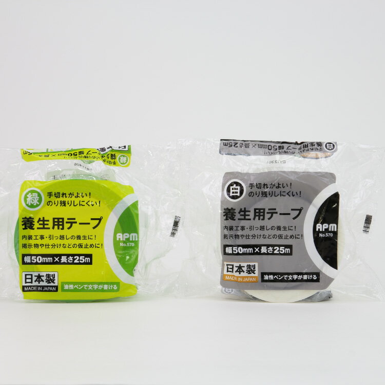 養生テープ 白 緑 幅50mm×25m 1巻 日本製 APMジャパン 仮止め 引越作業 DIY No.570 2色 単品販売
