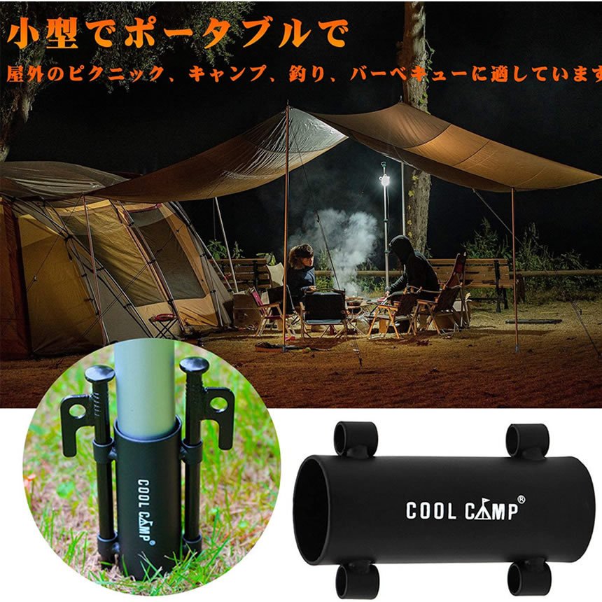 ※商品の入荷時期によりロゴがある場合とない場合がございます。※ タープ設営に手間がかかりませんか? ポールを支える間にタープを調整したりと手間と人が必要です。 この商品は、まずポールから固定できますので、少人数でタープが設営できます。 【ポールをガッチリ固定】 対応ポールサイズ:直径33mm以内 /ポールをがっちり固定。 【突風にも強い】 山間のキャンプ場は突風が吹く場合があります。タープが飛ばされると修復に時間がかかります。 この商品はポールをしかっり固定しますので、突風に強いタープに仕上げることができます。 【ソロキャンプ道具】 少人数でもタープが設営できるのが魅力ですが、慣れてきますと、 1人でもタープを設営できます。ソロキャンプ用のツールとしても活躍します。