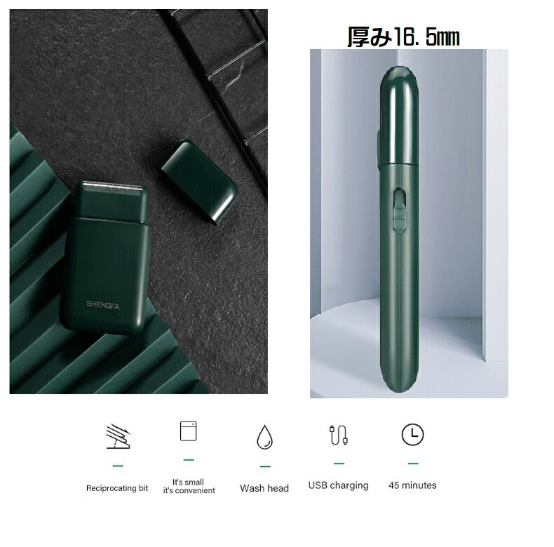 薄型シェーバー モバイル メンズシェーバー 超薄型で携帯に便利:薄型のカードデザイン採用し、厚さは約1.7cmで、 ポケットにも簡単に入れることができます。 ワンピースボディはシンプルな形状で、アッパーシェルとフロストボトムシェルを際立たせています。 ファッショナブルでクールな質感で、さまざまなシーンに対応できます 水洗い可能(ヘッド部)なので衛生的です 付属品:USB TYPE-C充電ケーブル、クリーニングブラシ 日本語説明書は付属しておりません。 電源方式:充電式、満充電時間:約8時間 、連続使用可能時間: 最大約45分 材質 ABS サイズ: 9.4cm×5.7cm×1.7cm ※保障:輸入品の為初期不良時のみの対応となります。