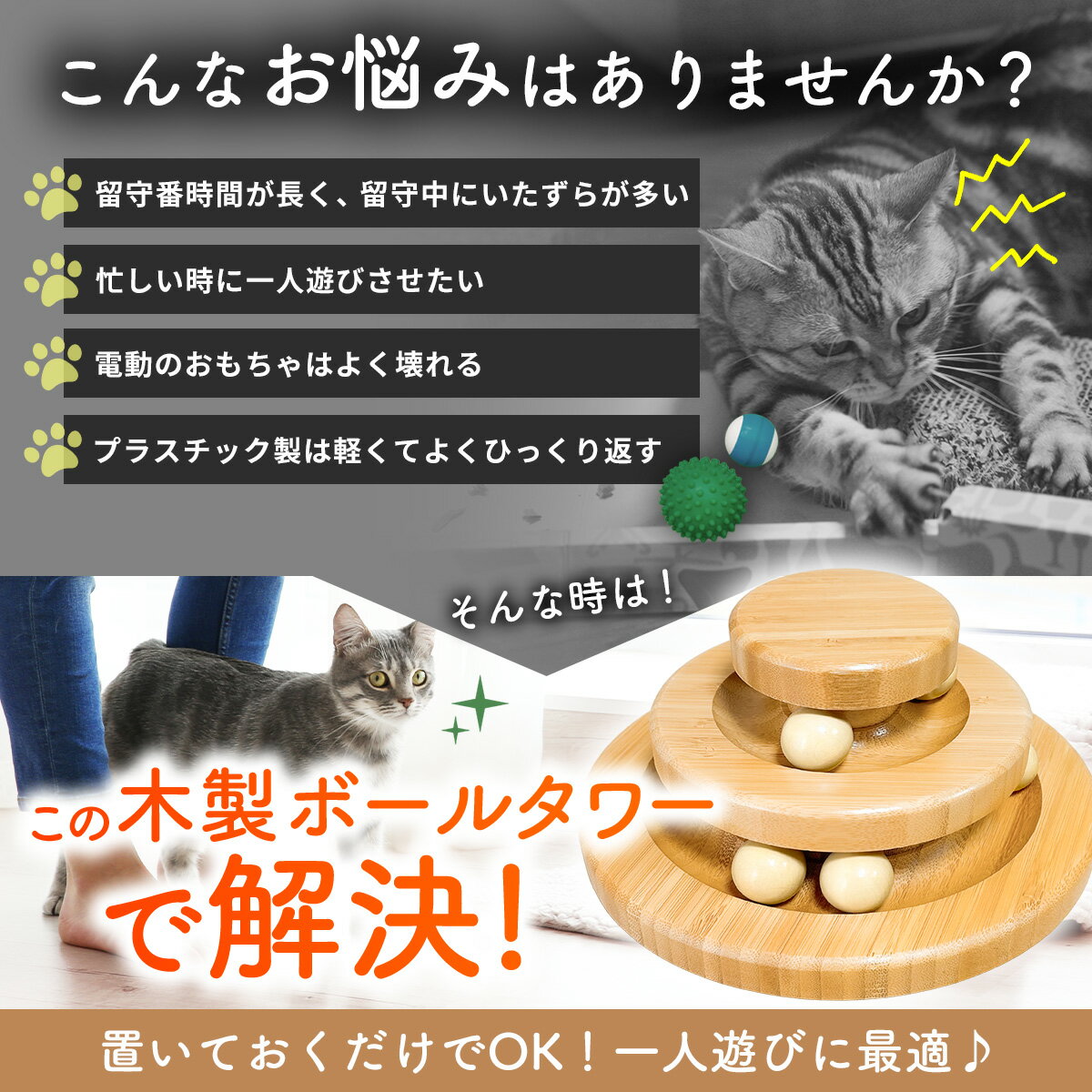 【動物管理士監修】猫 おもちゃ ボール 木製 タワー 2段 3段 ネコ 一人遊び 知育 ストレス解消 グッズ ねこじゃらし ボール回転盤 鈴付き 木 竹製 留守番 猫おもちゃ 人気 猫用おもちゃ 猫グッズ 猫玩具 オモチャ ひとり遊び 送料無料