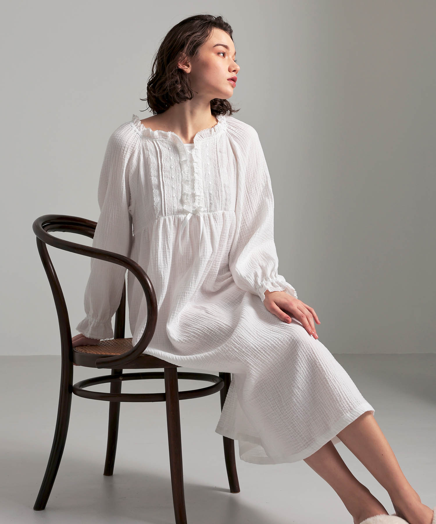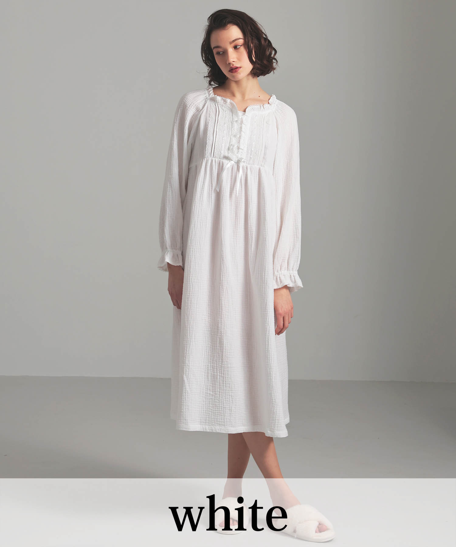 Narue公式 NARUE narue ナルエー 綿100% レディース おしゃれ 綺麗 ルームドレス コットン100% シュークリームガーゼ ルームウェア 大人かわいい 秋 おしゃれ 部屋着 軽やか やわらかい 着心地 ギフト プレゼント ホワイト ピンク サイズM〜L 25-51009