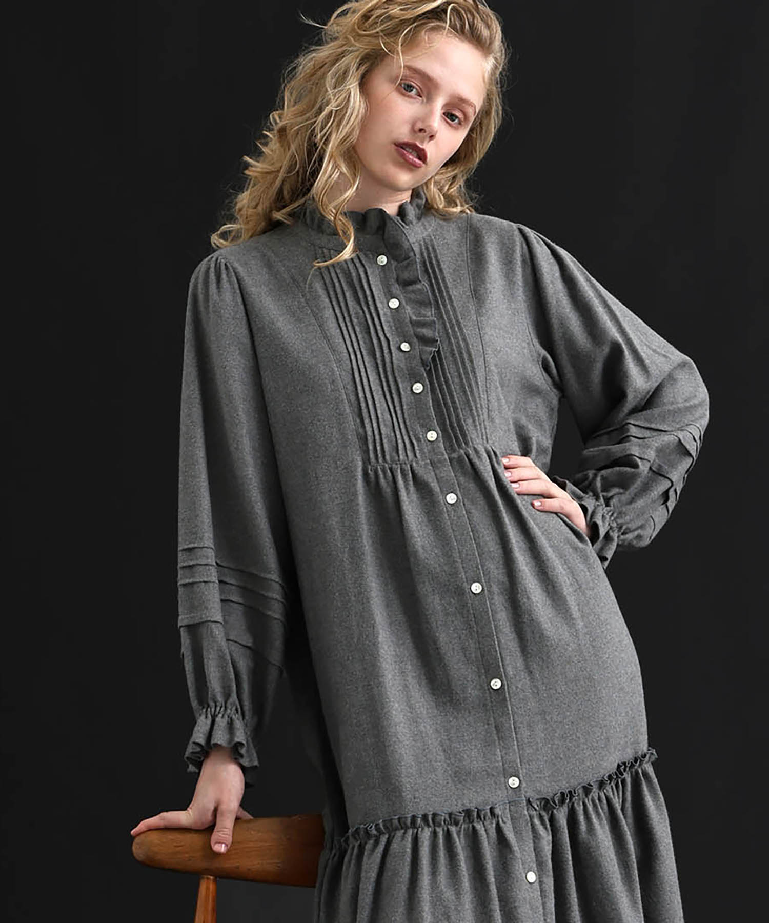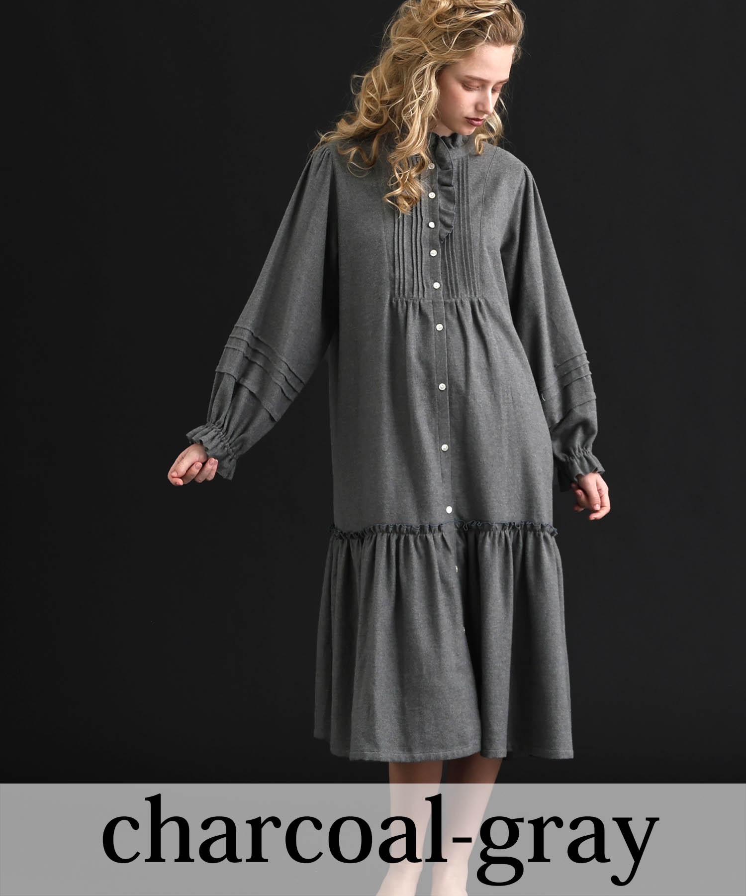 Narue公式 NARUE narue ナルエー レディース ワンピース パジャマ フリル ルームウェア 長袖 秋 冬 綿100% フランネル コットン100% 可愛い かわいい おしゃれ アイボリー チャコールグレー ホワイト サイズM〜L 25-71006