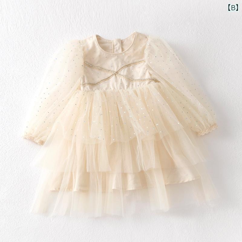 ・カテゴリ: キッズワンピース・スタイル: 基本スタイル、プリンセススカート・主な素材: ナイロン95%・裏地素材: 綿98%・対象: ガールズ・対象年齢: 3~8歳・柄: 無地・生地加工: 柔軟加工・季節: 春、秋、冬・要素: メッシュ・カラー展開: モーヴ、シャンパン・サイズ展開: XS、S、M、L、XL・推奨身長: 90cm、100cm、110cm、120cm、130cm