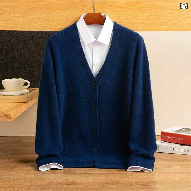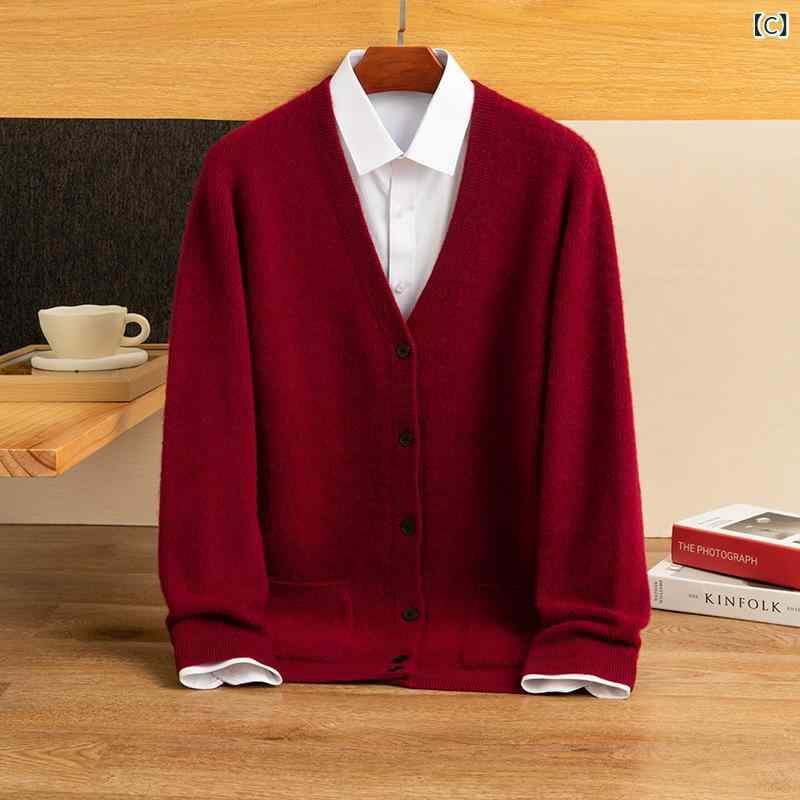 カーディガン 男性用 メンズ 秋冬 カシミヤ 上質ニット Vネック 厚手 肉厚 ルーズ ゆったり 羽織り アウター ビッグシルエット カジュアル きれいめ 無地 暖かい 保温性 高級感 普段使い
