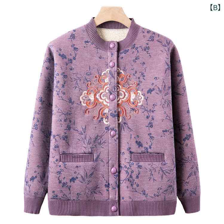カーディガン レディース シニア ママ 秋冬 裏起毛 厚手 保温 暖かい ゆったり アウター 羽織り 上品 おしゃれ 花柄 レッド パープル グリーン