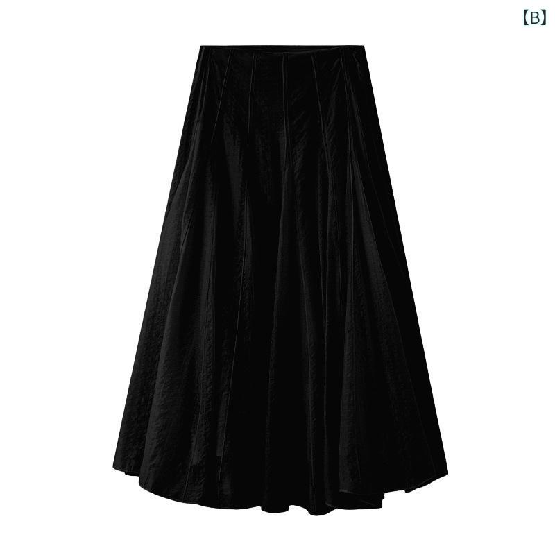 ・カテゴリ: スカート・スタイル: エレガント・主な素材: ポリエステル・柄: 無地・加工: パッチワーク、切り替え・シルエット: Aライン・丈: ミディ丈・カラー展開: オフホワイト、ブラック・サイズ展開: S、M、L