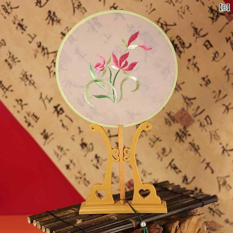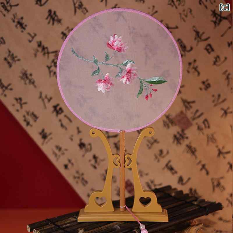 ・カテゴリ: 団扇・素材: 絹・形状: 円形・加工: 刺繡・骨組み素材: 木・スタイル: 新中華風・カラー展開: 藍、ピンク、緑、赤、紫、黄、水色・柄: 刺繡柄