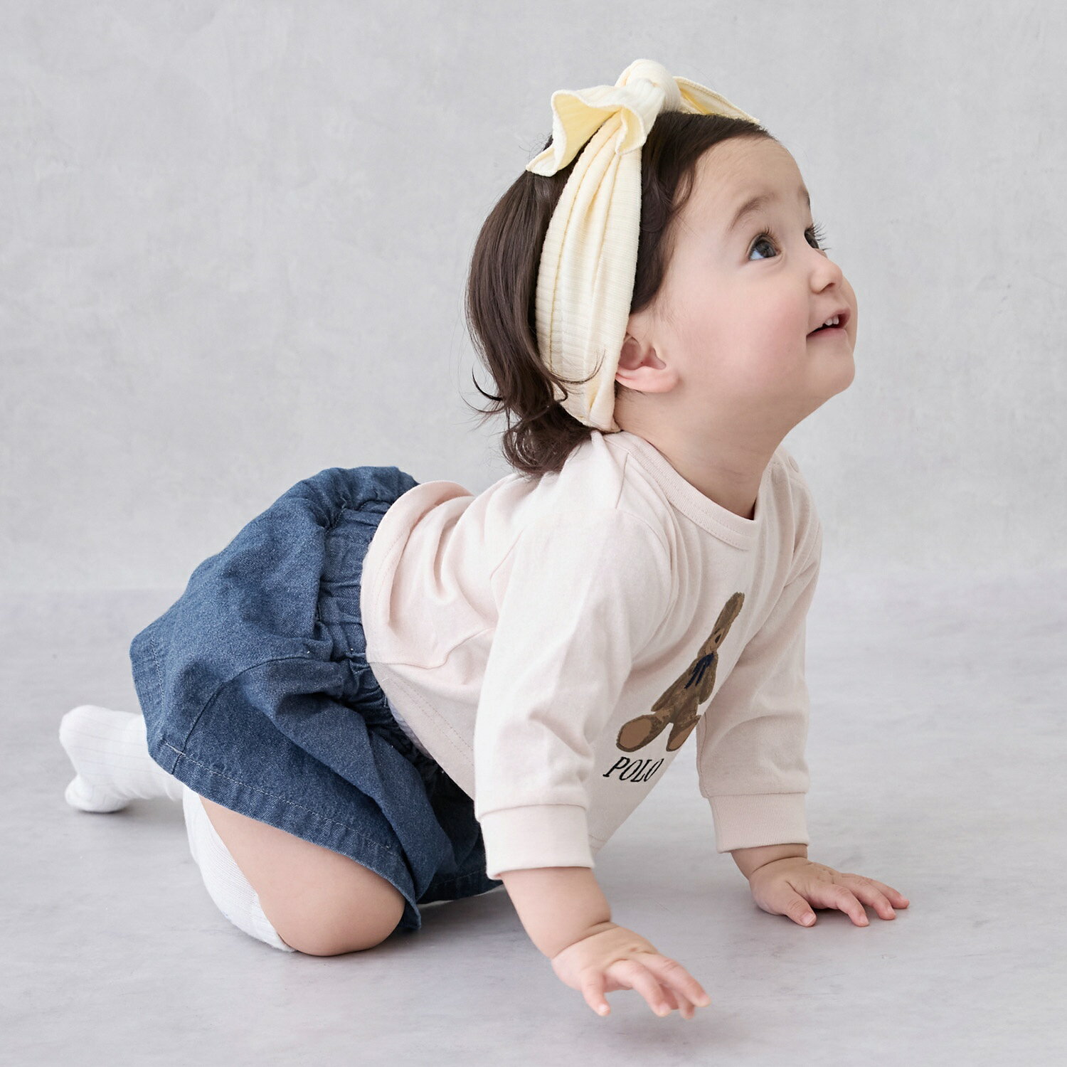 ■ベビー ■クマのグラフィックが可愛いTシャツとスカパンのセットアップです。日常に馴染む、ベーシックなカラーリングで仕上げました。肌当たりの良いコットン100%素材を使用しており、快適な着心地もポイント。スナップボタンとゴム仕様のため、スムーズにお着替えできます。内側にお名前を記入できるタグつき。9653203 【POLO BCS】くまグラフィック長袖Tの"ラベンダー"の製品と同じお色味の商品でございます。キッズサイズとのお揃いで着用が可能です。また、商品の色味につきまして、モデルの着用画像より商品のみの詳細画像のほうが実際の製品に近い写りでございます。予めご了承ください。【透け感】透けない【生地の厚さ】普通【伸縮性】あり【裏地】なし【ポケット】なし ■上衣:本体:綿100% リブ部分:綿95% リブ部分:ポリウレタン5% 下衣:綿100% ■週情報:251119 ■サイズ展開(単位cm): サイズ トップス:着丈/胸囲/肩巾/袖丈 ボトム:ウエスト/総丈 70cm 27.5/52/19 19/16.5 80cm 29/58/22.5 20/18.8 サイズ表記について ■カラー展開 ライト ピンク アイボリー メーカー希望小売価格はメーカー商品タグに基づいて掲載しています