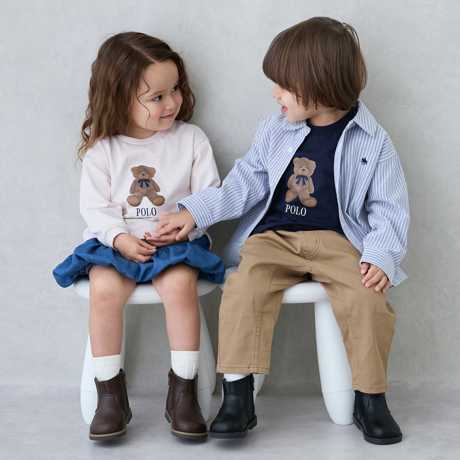 プティマイン(petit main)【POLO BCS】クマグラフィック長袖T+スカパンセット