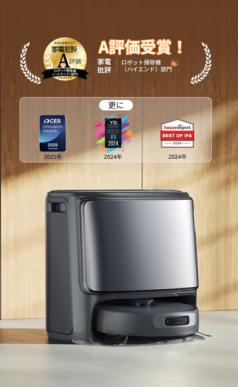 製品仕様 型番 YJCC017 材質 プラスチックなど サイズ ・充電ステーション: 430.8 x 462 x 388.3 mm ・ロボット掃除機本体: 355 x 350 x 109.6 mm 重量 ・充電ステーション: 12.3kg ・ロボット掃除機本体: 4.5kg 吸引力 12000Pa バッテリー容量 5200mAh 充電時間 約2.5時間 動作時間 120-160分 障害物を乗り越える高さ 12mm ダストボックス容量 2.5L(120日間のゴミ捨てサイクル) 水タンク容量 ・浄水タンク: 5L ・汚水タンク: 4.5L 動作音 ・温風乾燥: 35dB ・水拭き: 52dB ・吸引: 53dB ・自動モッブ洗浄: 63dB ・自動ゴミ収集: 71dB 乾燥温度 45℃~75℃ モップ回転速度 180回/分 定格動作電圧 14.4V 定格出力 45W PSE認証 ・登録検査機関名:関東経済産業局 ・PSEマークの種類:丸形PSE(充電ステーション) 注意事項 【注意事項】 ・当店の商品は全て国内から配送されます。 ・国内配送の商品は国内でのお買い物と同じく消費税が発生いたします。関税はかかりません。 ・色がある場合、モニターの発色の具合によって実際のものと色が異なる場合があります。 ・1年メーカー保証をつけます。 関連キーワード ロボット 掃除機 吸引 水拭き 自動 ゴミ 収集 スマート 家電 お掃除ロボット 時短 共働き 子育て ペット フローリング カーペット 段差 充電 マッピング AI アプリ スマホ 連携 Wi-Fi Alexa Google 静音 強力 吸引力 コンパクト 予約 フィルター 比較 おすすめ ランキング 最新 センサー 家具 回避 落下 障害物 防止 スケジュール 家事 軽減 生活 プレゼント レビュー 高評価 人気 メーカー希望小売価格はメーカーサイトに基づいて掲載しています 【表示中の商品はこちら】
