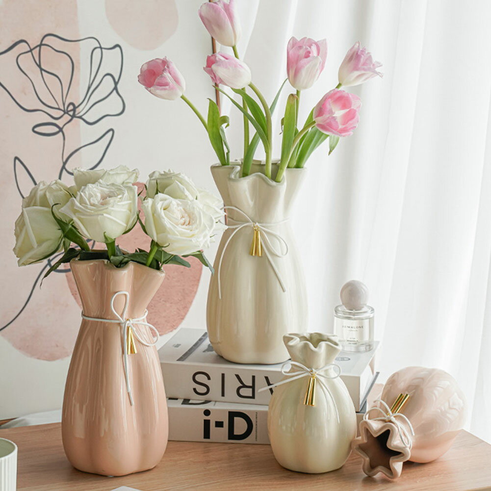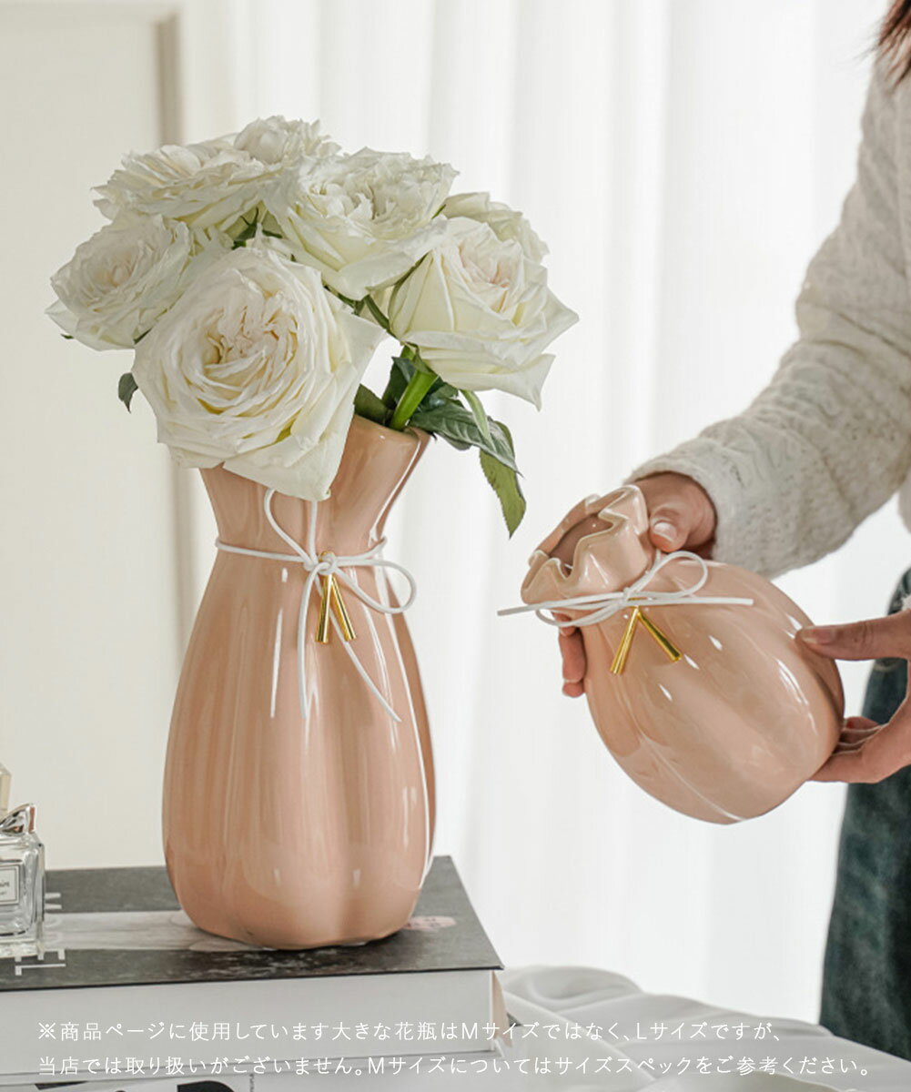 花瓶 花びん フラワーベース セラミック 陶器 リボン付き おしゃれ かわいい 小型 大型 小さい 大きい 一輪挿し 花束 ドライフラワー インテリア シンプル 北欧 韓国インテリア 花器 新築祝い リビング ダイニング 玄関 エントランス 寝室 窓際 トイレ オフィス 滑り止め