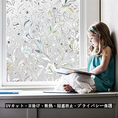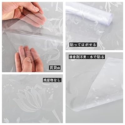 Homya 窓 めかくしシート 窓用フィルム 目隠しシール 3D 花柄 窓断熱シート 結露防止 飛散防止 UVカット 浴室 風呂 玄関目隠し 水で貼る 貼ってはがせる 防犯フィルム 窓ガラスフィルム 日差し対策 幅40cm長5mブランドHomya色花柄(透明)モデル商品説明【静電膜】PVC素材で厚さ0.22-0.24mmの静電膜は柔らかく、滑らかな吸着面があります。大気圧を十分に利用して静電気吸着の多重効果と相まって、よりしっかりと吸着します。台風、地震などの時、ガラスが割れても破片が飛び散らない!割れたガラス破片による二次災害と思わぬ怪我を防ぐことができます。また普段は不注意でガラス表面の擦り傷も防止します。【接着剤不要・水で貼る】本ガラスフィルムは何の接着剤も不要、貼るのは超簡単です。はがしてから水だけで貼らけばいいです。何の有害物質もなく、赤ちゃんにもやさしくて無毒で安心しています。(貼る方法が詳細ページにご覧になってください)【繰り返し利用】貼ってはがせるタイプで、繰り返し利用頂けます。貼るのが失敗しても安心して貼り直す可能です。はがしても粘着剤が残らないので、賃貸OK、引越ししても再利用できるため、コスパ良くてとても便利です。【日除け・プライバシー保護】窓用ガラスシールは一部の強烈な日光をよく遮り、紫外線を遮断し、日焼け止めと断熱ができ、太陽光で家具が老化するのを防ぐことができます。冬は暖かくお部屋の暖気を逃がしません(断熱效果)。半透明の状態は、のぞきを防ぎ、プライバシーを守ることができる上に、部屋を暗くすることもありません。採光に影響しません。【適用範囲】平滑で平らなガラスに適しています。すりガラス、曲面ガラス、凹凸のあり、平らでないガラスには使えません。★キッチン、レストラン、オフィス、ドア、窓などのすべすべしたガラスに使うのがおすすめです。