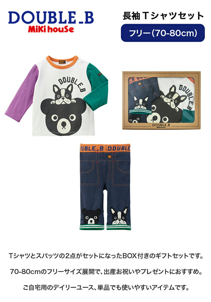 \全商品11倍以上!/ミキハウス正規販売店 ミキハウス ダブルB mikihouse DOUBLE_B 長袖Tシャツセット BOX付き マルチカラー 長袖 Tシャツ スパッツ セット 上下セット くま柄 クマ くま 犬 フリーサイズ 64-1106-682 クリスマス プレゼント ラッピング対応