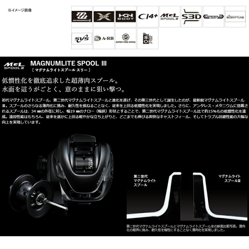仕様/規格●ギア比:8.1●最大ドラグ力(kg):5.0●自重(g):175●スプール寸法(径mm/幅mm):34/19●ナイロン糸巻量(lb-m):12-100、14-90、16-80、20-65●最大巻上長(cm/ハンドル1回転):86●ハンドル長(mm):45●ベアリング数BB/ローラー:10/1●XGはエキストラハイギア仕様●シマノ製のリールは2022年よりオイルの付属が廃止となっております。メンテナンス用のオイルがご入用の際は以下より適したものをお買い求めください。(別売)SP-003H(メンテスプレーセット)SP-013A(オイルスプレー)SP-023A(グリススプレー)SP-015L(ザルスリールオイルスプレー)※オイルの使用箇所はリール取扱説明書をご確認くださいメーカー品番041166商品説明●強靭コアソリッドボディ&低慣性マグナムライトスプールIII搭載。強さと軽さと抜けの良さが実現するバーサタイルの新境地。軽量で操作性が高く、守備範囲が広いテクニカル系オールラウンダーに、マグネシウム一体成型のコアソリッドボディと、軽やかな立ち上がりと抜けるような伸びの良さを実現するマグナムライトスプールIIIを搭載。軽快な操作性とタフな釣りへの適応力をアップし、巻きも撃ちもライトリグも、テクニカルにこなせます。さらに軽量自重はそのままに、超高強度真鍮ドライブギアを搭載し、タフさにも磨きを掛けました。特集区分●大爆釣特価品特集関連ワード●釣り具 釣具 つり具 ベイトキャスティングリール■良くあるご質問Q.このリールに保証書はついていますか?電動リールを除き、リールには基本的に保証書の付属はございません。※電動リールには基本的に保証書が付属しておりますが、一部例外としてアウトレット品などで付属していない場合はその旨商品ページに記載を行います。Q.ラインを一緒に買うので巻きつけて送って欲しいのですが・・・ 申し訳ございません。ラインを巻きつけての出荷は行っておりません。Q.リールとロッドの適合確認は出来ますか?同一メーカー製品同士であれば確認を行なうことは出来ますが、他社製品同士または輸入品につきましては確認を行なうことが出来ません。リールとロッドは取り付け部形状の共通規格が無く、適合しない場合がございますので、予めご了承下さいませ。ジャンル識別情報:/g1003/g206/g301/m002/※納期表示のご説明はこちら