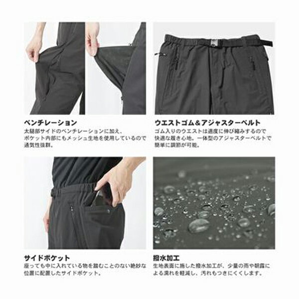 仕様/規格●サイズ:身長/170-179cm、ウエスト/82-91cm●素材:ナイロン、ポリウレタン●中国製商品説明●アウトドア、登山はもちろんのこと、街着としても活用できる汎用性が高いパンツ●吸汗速乾性に優れたドライな履き心地●水滴を弾く撥水加工●着用時のムレを軽減するベンチレーションメッシュ●動きやすいガゼットクロッチ●座ってもポケット内の物を踏むことがない絶妙な位置に配置したサイドポケット●幅広く活躍する中厚地のオールシーズンタイプ特集区分●【山食行路】登山おすすめアイテム●メンズ関連ワード●アウトドアウェア アウトドアファッション アウトドアスタイル 男性用 長ズボン スポーツウェア カジュアルウェア ファッションウェア トレーニングウェア ボトムスジャンル識別情報:/g1045/g226/g301/mBIM/※納期表示のご説明はこちら