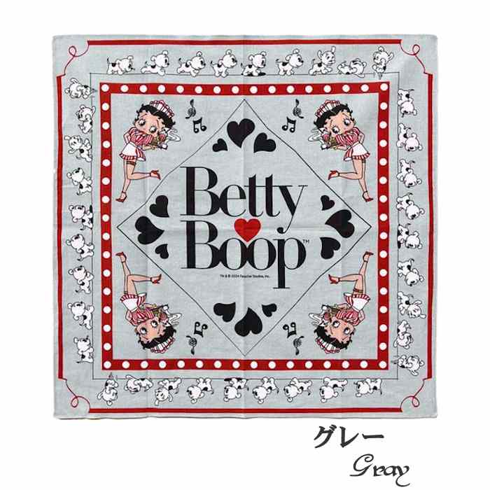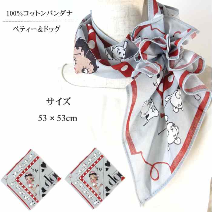 【ポイント10倍】100% コットン バンダナ ベティー&ドッグ レギュラーサイズ(53×53cm )「グレー」正方形 メム