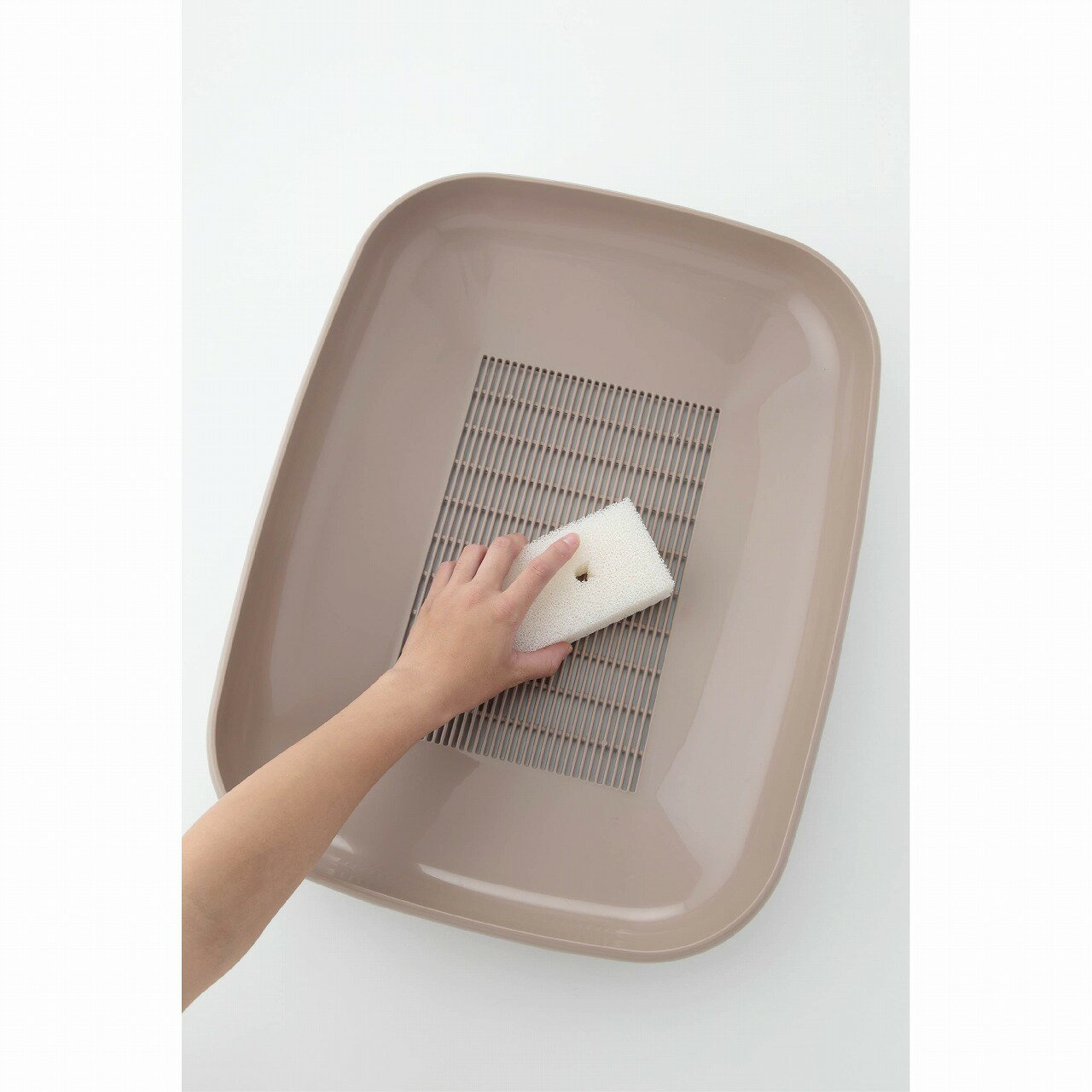 猫トイレのお掃除専用のブラシスポンジです。 ●ブラシのフッ素加工が掃除するたびにトイレ表面にフッ素の膜を作り、トイレを汚れにくくします。 ●特許素材0.045mmのミクロ繊維がトイレ表面の凹凸やミゾ、キズに入り込み汚れをサッとキレイに落とします。 ●ブラシ面はフッ素加工がしてあるので、汚れやニオイが残りにくく、清潔に使用できます。 ●フック穴付きなので使用後は掛けて収納できます。フッ素のチカラで洗うたびに汚れにくくなる!