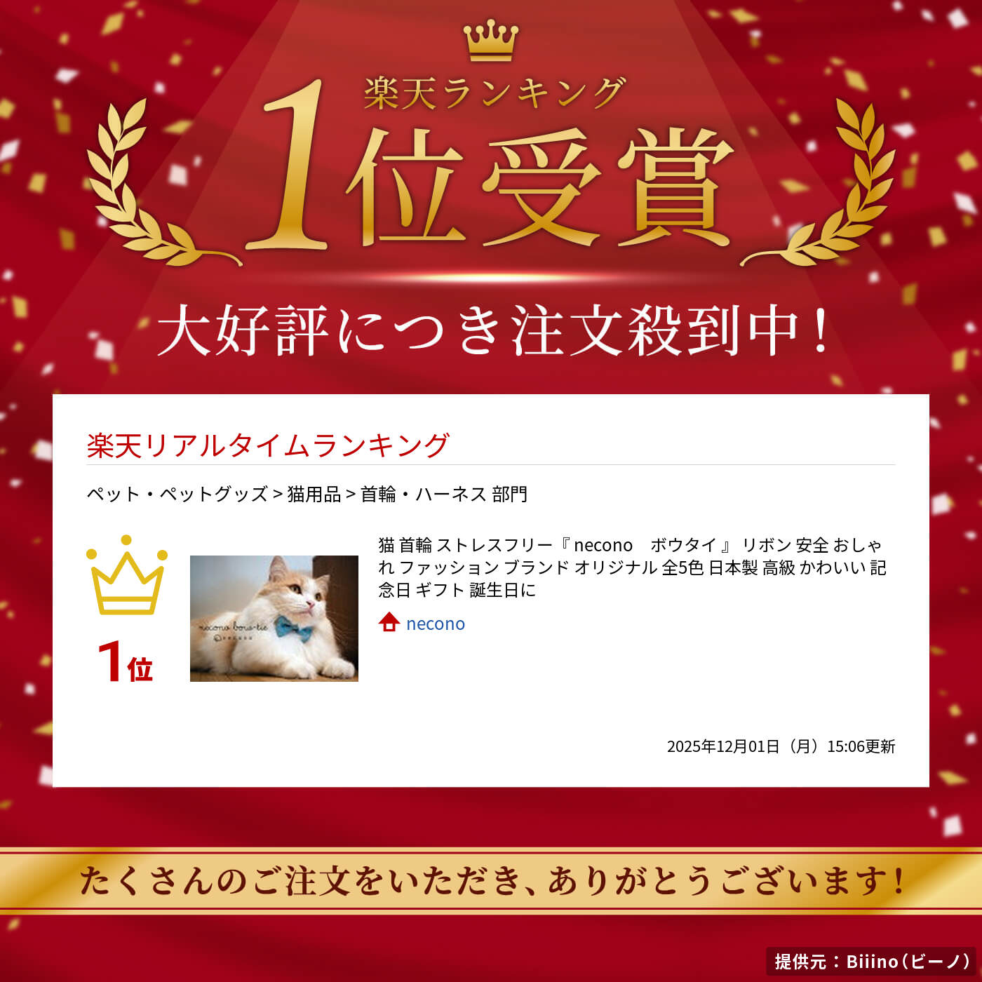 猫 首輪 ストレスフリー『 necono ボウタイ 』 リボン 安全 おしゃれ ファッション ブランド オリジナル 全5色 日本製 高級 かわいい 記念日 ギフト 誕生日に