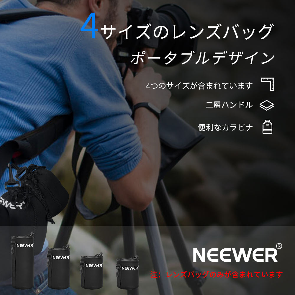 【P10倍UP中! ★楽天1位獲得!】NEEWER レンズケース 4点セット レンズポーチバッグ 厚い保護ネオプレン付き DSLRカメラレンズ用(Canon、Nikon、Sony、Olympus、Panasonicに適合) S、M、L、XLサイズ