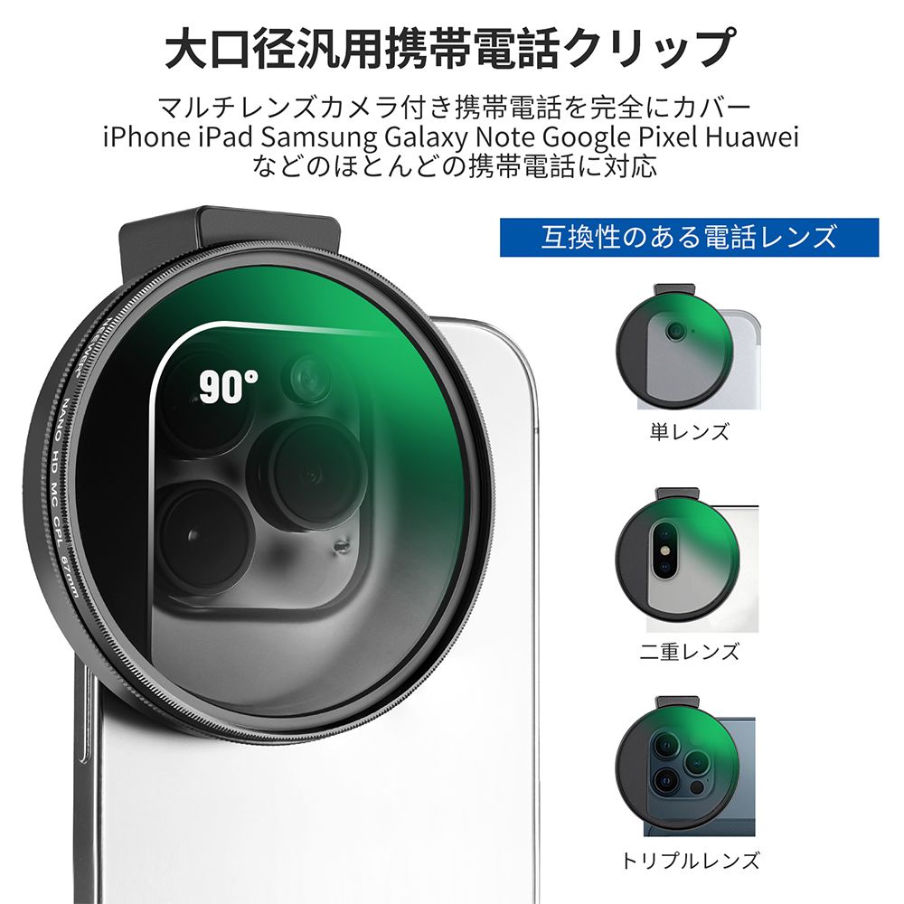 【P10倍UP中! ★ランキング1位入賞】NEEWER CPL フィルター スマホ用 67mmカメラレンズ偏光フィルター 金属製コールドシューフォンクリップ付き iPhone 15 Pro Max 14 Pro Max 13 Pro Max 13 Mini 12 11 X XS Max Samsung Galaxyに対応 FL-27