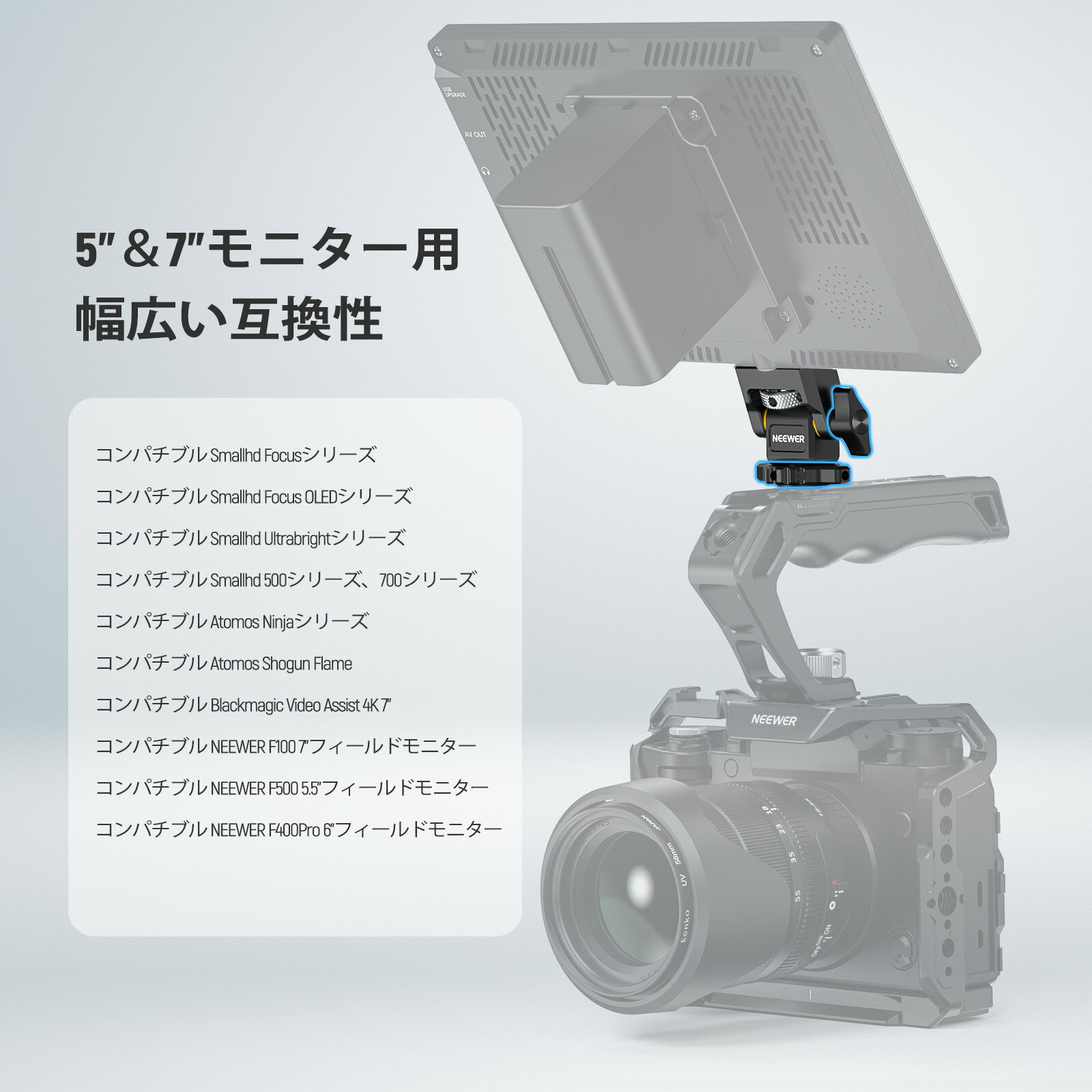 NEEWER カメラモニターマウント コールドシュー付き ねじれ防止1/4"ネジ 5インチと7インチフィールドモニターに用 コンAtomos Ninja Vに対応 360°回転&調整可能な180°傾斜ダンピング SmallRigに対応 MA006