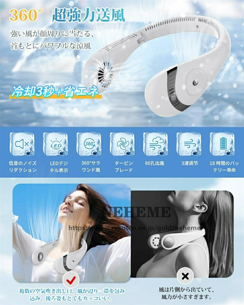 【2024新進化 ネックファン】Oldstar 2024新しいバージョンのパーソナルネックファンは、気流と騒音をアップグレードしました。あなたが歩いている間、あなたはきっとあなたの首にファンを掛けることを好む、髪がファンの刃に巻き込まれることを心配する必要はありません。60のファンブレードが風を密に集め、風が強くなります。 【360°回転&80エアアウトレット】個人的なファンは首の周りに着用され、360°の方向を柔軟に調整できます。最も適切な風の方向を見つけましょう。80の穴はエアコンセントを取り囲み、3秒ですばやく冷却できます。80の空気があなたの顔全体に空気を吹き飛ばすことができます、そして、夏全体であなたを涼しくしてください。 【柔らかくて肌に優しい】葉のないネックファンは高品質の肌に優しいもので作られています、および冷却材料。個人的な冷却ウェアラブルネックファンは、あらゆる年齢の男性と女性に適しています。高齢者や子供が使用できます。長い間着ても不快感や縛られることはありません。 【LEDディスプレイ表示&3速度】独立したボタンで簡単に切り替えることができます、1速/2速/3速を含むもの。両側のツインタービンとツインダクトからのベニフィット。ネックファンは非常に低いノイズを生成します、より静かな冷却を楽しむことができます。 【容量の大型バッテリー】5000mAh充電式リチウムバッテリーに組み込まれ、USBケーブルを介してファンに充電できます。大きなバッテリー容量は、ネックファンが18時間動作するのをサポートします。Type-C入力ポートネックファンは、高速充電設計を備えています。完全に充電されるまでに3〜4時間しかかからないこと。一度に強い空気の流れをお楽しみください。 【ワイドアプリケーション】パーソナルネックファンの重量は約245gで、超軽量です。首の負担が少ない。ウェアラブルファンは、すべての年齢の男性、女性、ティーンエイジャー、子供に適しています。個人的な冷却、オフィス、アウトドアアクティビティ、暑い日には、ジム、キャンプ、旅行、ハイキング、登山、スポーツなど。