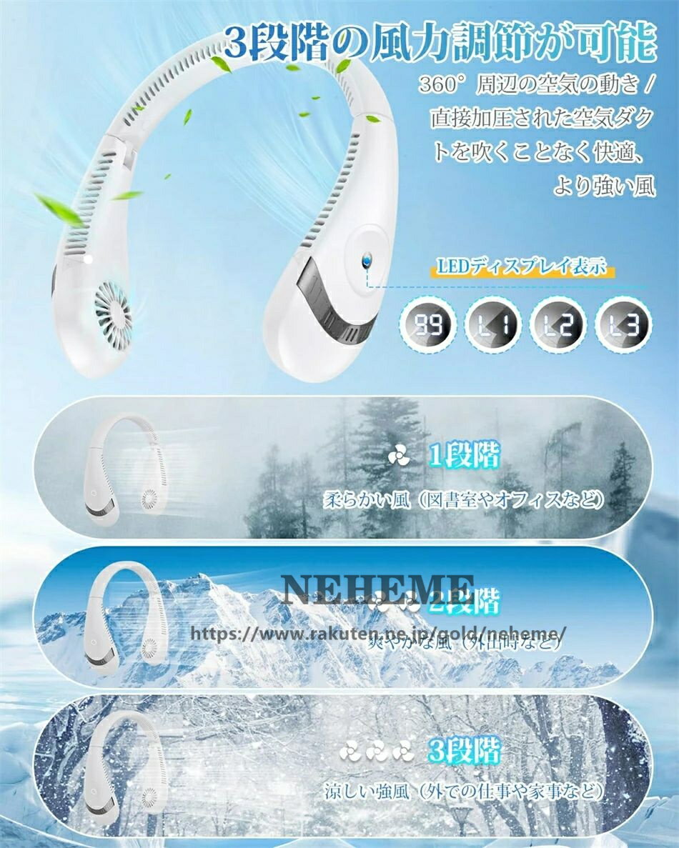 【2024新版・夏の ネックファン】ネッククーラー 5000mAh 首掛け扇風機 ネッククーラー LEDディスプレイ表示 ネックファン 携帯扇風機 瞬時冷却 熱中症対策 3段階風量調整 静音設計 Type -C充電式 最新冷却式 折りたたみ式 羽なし自由角度調整可 遠足 自宅/家事などに最適