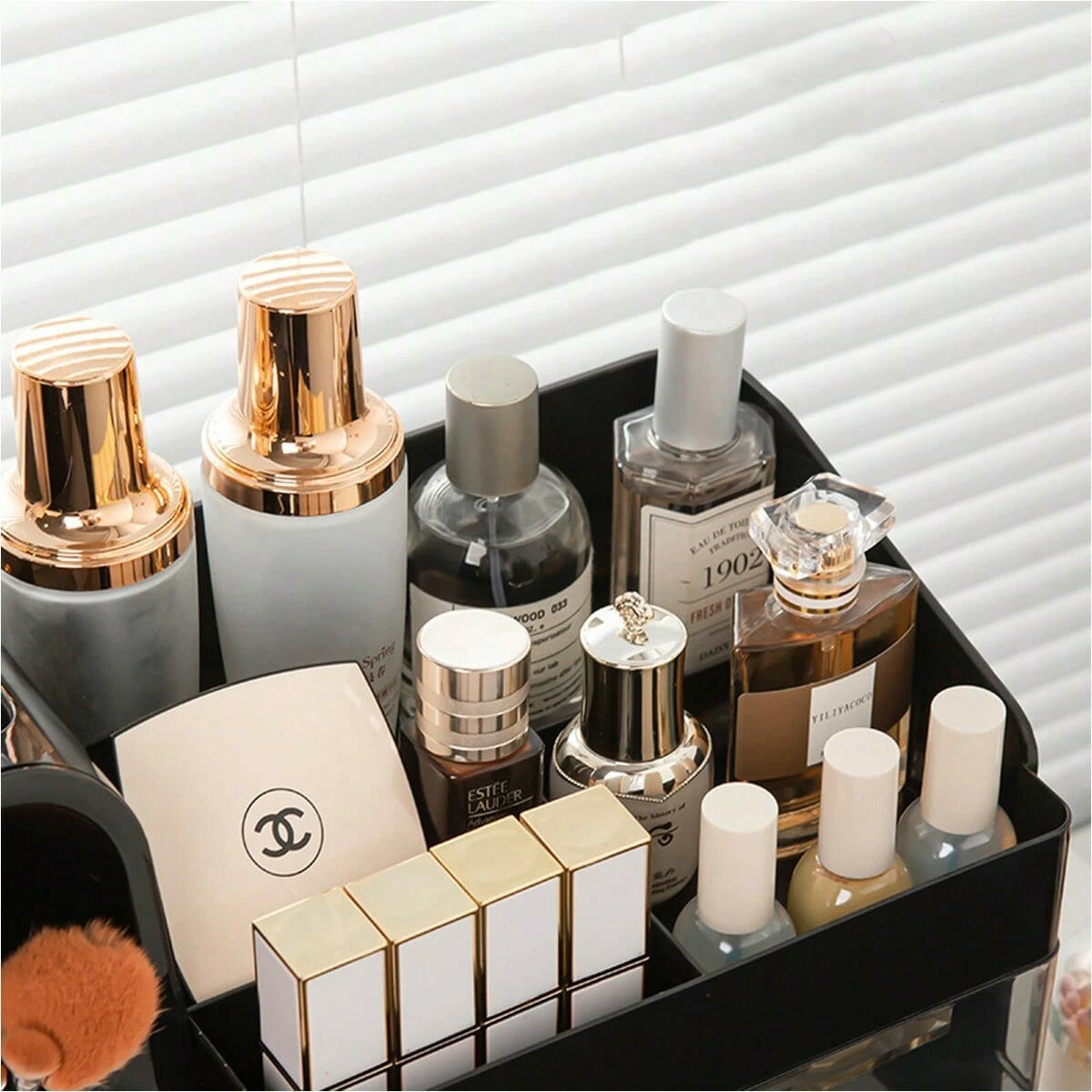 💄【大容量収納でスッキリ整頓】メイク用品、スキンケアボトル、リップ、ブラシ、アクセサリーなどをまとめて収納できる大容量デザイン。 上部の仕切り付きスペースはボトル立て収納に最適。下部には透明引き出しがあり、中身を一目で確認できます。 サイズ:約幅35cm × 奥行18cm × 高さ25cm✨【高級感×機能性の融合】丸みを帯びたモダンなフォルムとツヤ感ある仕上げが特徴。 ABS樹脂素材を使用し、耐久性・防水性・耐衝撃性に優れています。 長く使えて、デスクやドレッサー上を美しく保ちます。🧴【細部まで考えられたデザイン】上段:仕切り付きオープンスペース(ボトル・ブラシ収納に便利) 下段:3段引き出しで小物・コスメを分類収納 透明引き出しで中身が見やすく、整理も簡単 滑り止め脚付きで安定感抜群🪞【使いやすさ&お手入れ簡単】引き出しはスムーズに開閉でき、ほこりが入りにくい設計。 水拭き可能でいつでも清潔に保てます。軽量で移動も簡単。🎁【こんな方におすすめ】✔ コスメやスキンケアをまとめて整理したい方 ✔ ドレッサーやデスクをスッキリ整えたい方 ✔ 高級感のある収納ボックスを探している方 ✔ ギフト・プレゼントにも最適📦【商品仕様】項目 内容 サイズ 約 幅35×奥行18×高さ25cm カラー マルチカラー 素材 ABS樹脂 電源 なし 重量 約1.3kg 構造 上段:仕切り付き収納スペース / 下段:透明引き出し3段 用途 メイク収納、スキンケア収納、文房具整理、アクセサリー収納など