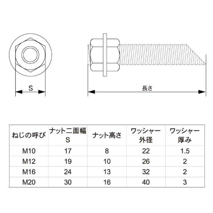 ※施工時に作業しやすいよう、ボルト1本に対してナット2個とワッシャー1枚を組み込んだ商品です。 ■特長 先端部を45°にカットしてある寸切(ズンギリ)です。ケミカル寸切 45°カットとも呼ばれます。 斜めにカットされた側の先端部を、撹拌式のケミカルアンカー?(接着系あと施工アンカー)と共に埋め込んで使用します。斜めにカットされた先端部分がマドラーの様に材料を撹拌します。 カプセル型接着系あと施工アンカーは骨材・樹脂・硬化剤が主材料でガラスなどの管に入っています。 本商品を回転方式・回転打撃方式の接着系あと施工アンカー(撹拌式)がセットされた穴に、工具を用いて回転させながら埋め込みます。アンカーが砕かれ、中の材料が混ざり合い化学反応を起こします。 砕かれたガラスも骨材になります。 硬化後、“投錨効果”によってケミカル寸切はアンカー筋として固定されます。 先端が平らの寸切や円錐状ではうまく撹拌されません。 この斜め加工が施された寸切が接着系あと施工アンカーの利用に便利なことからケミカル寸切と呼ばれています。