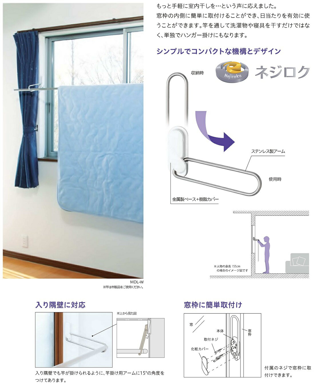 ・内窓枠用側面付タイプです。 ・外出時の洗濯物や肌着等の人に見られたくない洗濯物、布団干しに大変便利です。脱衣場や洗面所まわりにもご利用いただけます。 ・賃貸住宅への取付けを意識したシンプルで丈夫な機構です。 ・アームに角度を付けているので、入隅壁にも対応します。 ・ホワイト色は白色系クロス巻込みの窓枠によく合います。 ご注意 ・竿は最大35mm(キャップ径)まで使用可能です。竿は別途ご用意ください。 材質アーム: SUS304、化粧カバー:AES 色(化粧カバー)ライトブロンズ サイズ249×54mm 荷重目安(2本1組)12kgf 重量1組600g 入数1組(左右) メーカー公式商品情報ページ ttps://sugita-ace.meclib.jp/sugita-ace2021/book/#target/page_no=1 タイプ一覧 ↓ こちらをクリック ショート【ホワイト】 ショート【ライトブロンズ】 ロングタイプ 【ホワイト】 ロングタイプ 【ライトブロンズ】