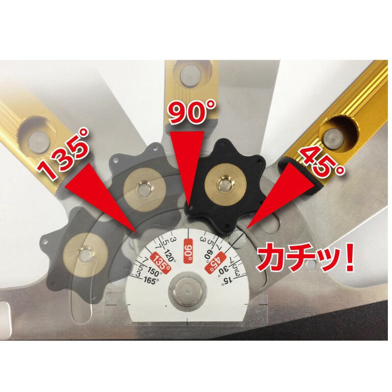 約3サイズ上の長さまで切断できるガイドスライド機構 手前にスライドさせれば45°以下の鋭角切りや角材の切り始めも安定 45度・90度・135度の主要3角度にカチッと止まるクリック機構 押え部とガイド部に滑り止めゴムを採用 裏返しての使用も可能 衝撃に強く曲がりにくい高剛性アルミパイプ材 材料をしっかり押さえる厚さ9mmの突き当て 見やすく合わせやすい新目盛 捨て木取り付け機能搭載 ●仕様 長さ:370mm-600mm 目盛:角度・勾配両目盛付 目盛:15°〜165° 有効切断長:370mm〜600mm 精度:200mmで±0.7mm以内 ●材質 本体:ステンレス・アルミ 固定ネジ:真鍮、ABS樹脂 滑り止め:ゴム