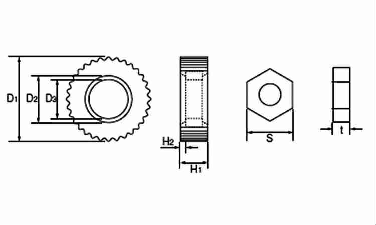 注意事項★ ネジの実写画像についての注意事項 ・ ねじの形状は同等ですが、サイズ、ピッチ、ねじ部の長さは異なります。 ・ 刻印はサイズによって異なり、予告なく変更される場合があります。 ・ ディスプレイの違いにより、実際の色合いと異なる場合があります。関連商品 ★ お得セット (40個) ここをクリック!★ 小箱売り (300個) ここをクリック!その他のサイズ 当商品のサイズ違いは、下の「サイズ表」より参照してください。 ★ サイズ表 ここをクリック!この商品は、ネコポスでの配送が可能です。ご注文の総量がネコポスの取り扱い規定サイズを超える場合は宅配便に変更させていただきます。変更になる場合はご注文内容確認メールでご連絡いたしますので、必ずご確認下さい。また、ネコポス配送をご希望の場合は必ず配送について 「ネコポス」をご確認ください。化粧ナット (貫通・黒) [超特大:K-5][ねじ部:鉄/三価ホワイト] M8 【 バラ売り : 4個入り 】注)写真はイメージです! 刻印、ねじ部の長さ、ピッチなどは、サイズによって異なります。刻印はメーカーによって予告なく変更される場合があります。 頭部形状 丸型ノブ・貫通手で握る頭部形状が、丸い円柱状になっており、滑り止めのために側面にギザギザのローレットなどが付いています。頭部上面のねじ穴は貫通しているので、相手ボルトのねじ部の長さを気にせず取付けできます。締め付けには工具不要で、手で摘まんで締付けします。 ねじ部材質 鉄「鉄」 とは 「鋼」 であり、炭素を含んだ鉄の合金です。一般的に多く流通していて、安価な材質ですが、錆びやすいという欠点があるため、多くは表面処理により腐食を抑えます。 ねじ部表面処理 三価ホワイト ※ 商品の色合いとなります。「クロメート」と同等の耐食性をもち、擬似的な自己修復性ももちます。六価クロムと異なり無害で、RoHS指令にも対応しています。 そのため、ユニクロ/クロメートの代替として使用されます。色合いは、「シルバー色」 です。注)上記「材質」、「表面処理」画像は、厳密な色合いが表現できません。イメージ程度でご覧ください。 ねじ部形状 並目ISO(国際標準化機構)規格で規定された、国内で一番標準的なピッチです。 国内で一番流通量が多い。 1.25 mm サイズ M8[太さ]「太さ」は ミリメートル(mm)単位で表します。 「太さ」の先頭に "M" が付きます。 8 mm( M8 )■ 本形状のネジは、こんなところで使用されていることがあります。 工具を使用せずに、手だけで締め付けるナット。 総称として「つまみねじ」と呼ばれています。一般的には各種部品を手で容易に締付け固定する時などに使用します。キャンプ用品、照明器具、家具などによく使用されています。注)使用用途に応じた 「強度」、「材質」、「ネジ部形状」 の商品をお選びください。