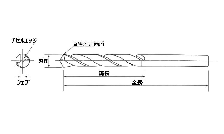 注意事項★ ネジの実写画像についての注意事項 ・ ねじの形状は同等ですが、サイズ、ピッチ、ねじ部の長さは異なります。 ・ 刻印はサイズによって異なり、予告なく変更される場合があります。 ・ ディスプレイの違いにより、実際の色合いと異なる場合があります。その他のサイズ 当商品のサイズ違いは、下の「サイズ表」より参照してください。 ★ サイズ表 ここをクリック!ISF エクストラ正宗ドリルP-EXD-3.0 (刃径=3.0mm) 【 バラ売り : 1パック (1本入り) 】注)写真はイメージです! 刻印、ねじ部の長さ、ピッチなどは、サイズによって異なります。刻印はメーカーによって予告なく変更される場合があります。 特 長 ● 切削性能 先端部にクロスシンニングを施していますので喰込みが早く、切れ味・能率が素晴らしく優れています。 一般鋼は勿論、ステンレスでも、コバルトドリルに劣らない切削性があります。● 穴径精度 先端2枚の刃先に特殊な平面刃をもち、切削量を一定に保つので、ドリル外径に近い高精度が維持出来ます。● 耐久性 普通ドリルの欠点は先端部チゼル(陵線)が切れ難いことにありますが、このドリルは特殊な平面刃によって、刃先角が鈍角でシャープなため切れ止みが遅く、普通の2倍〜5倍の耐久性を発揮します。