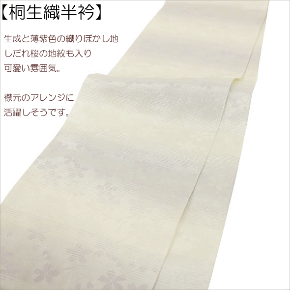 桐生織半衿【しだれ桜】生成紫ぼかし【メール便対応可】