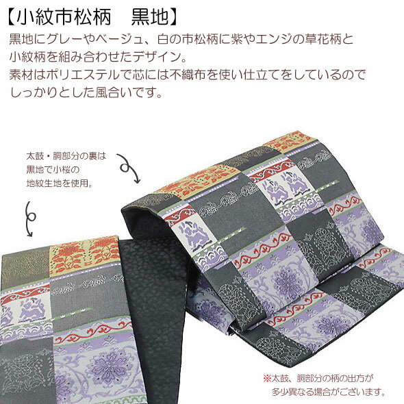 桐生織軽装帯【小紋市松柄 黒地】仕立上簡単軽装帯 作り帯 ワンタッチ帯 カジュアル着物名古屋帯 京袋帯 付け帯 付帯 ポリエステル 軽装帯二部式 文化帯 太鼓 お太鼓着物でお出かけ 和装カジュアル 普段着着物