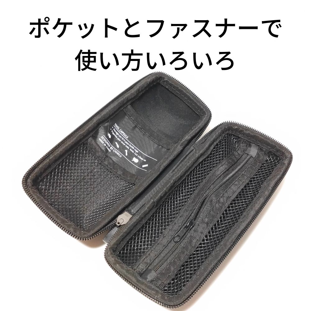 携帯に便利なサイクリング用小型ツールケース小型サイズの携帯用ツールケースです。 中は、片側がポケットになっていて もう片方は、全体がメッシュのファスナー収納になっています。 潰れにくいので、サングラスなどを収納しても良いですね。 サイズ 長さ:約18cm 太さ:直径約7~8cm 重さ:75グラム 無地タイプとカーボン柄とあります。無地ブラック/カーボン柄カーボン柄が入りました!