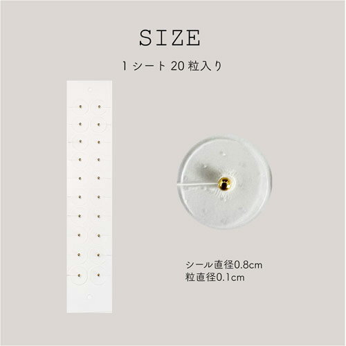 今話題の耳つぼジュエリー用シールシールが透明なので目立ちにくくファッション感覚で装着できますお好みのパーツをつけてオリジナルの耳つぼジュエリーをつくるのもおすすめです【内容量】1シート 20粒【カラー】ゴールド【粒素材】ステンレス 18Kコーティング【仕様について】粒は交換できるように作られているため接着されておりません。お届けした際に粒が取れていた場合にはピンセット等で戻してお使いください。※粒が取れていた場合の交換対応は出来かねます。【使用方法】・使用前に耳や手を清潔にし、アルコール等で軽く拭き取ってください。・シール部分に直接触れず、ピンセットを使って装着してください。・1回の使用期間は3日〜7日を目安にしてください。【使用上の注意】※心疾患、高血圧、妊娠中の方、皮膚に炎症がある方はご使用をお控えください。※金属にアレルギーがある方はご使用をお控えください。※異常を感じた場合はすぐに使用を中止し、専門医にご相談ください。※お子様の手の届かない場所に保管してください【メール便OK】▼登録カテゴリ【ネイル用品 > ケア】