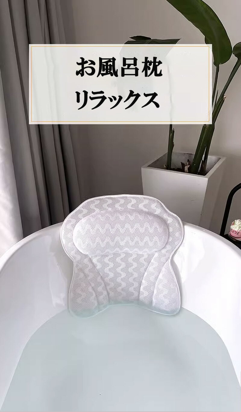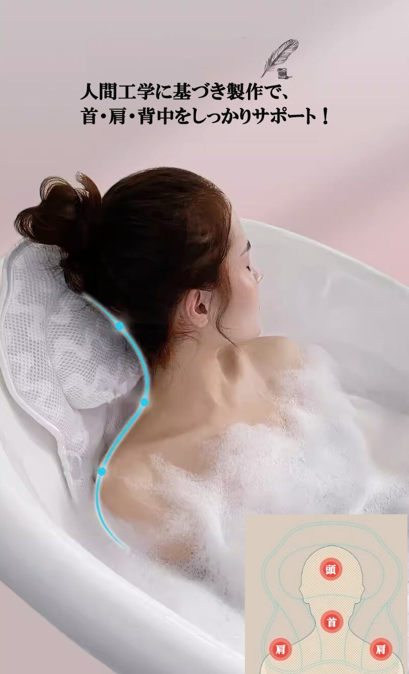 【ランキング3位 6回獲得】お風呂 枕 まくら バスピロー バスマクラ 吸盤接着タイプ 滑り止め リラックス 負担軽減 血行促進 睡眠の質の向上 浴槽 おしゃれ 肩こり クッション バス グッズ 男女兼用 nk1187
