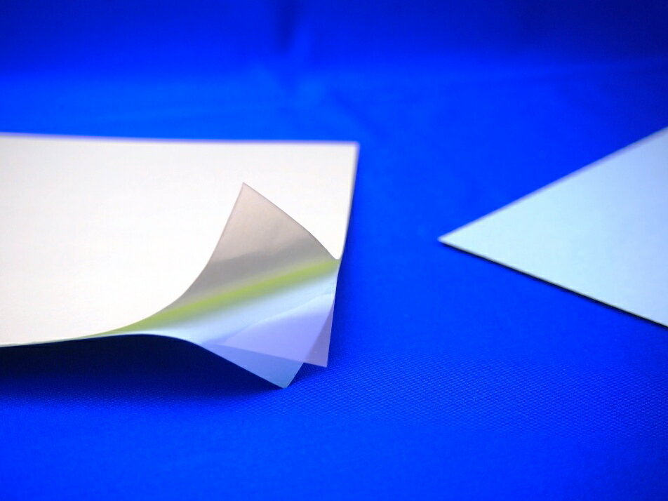 一度剥がすと再度接着しない、擬似接着フィルムを基材として、その両面に強接着タイプの粘着剤が付いた粘着シートです。 主に、見開きはがきの貼り合せ用として、各種支払い通知、案内状、ご利用通知、ダイレクトメール等に使用されております。 剥がして持ち帰る ピールオフ広告や、抽選くじ等にも使用されております。 サイズ 297mm×210mm 厚 み 約0.09mm (剥離紙は含んでおりません) 入 数 10枚 構 成 剥離紙 ライトグリーン色 粘着剤 アクリル系 強粘着タイプ 基 材 ポリエステルフィルム 透明 擬似接着層 特殊ポリエチレン 粘着剤 アクリル系 強粘着タイプ 剥離紙 クリーム色 性 能 粘着力 (180°剥離) 対ステンレス板 5.3N/10mm (1,350gf/25mm) 対PE板 1.7N/10mm (433gf/25mm) *数値は測定値の一例であり保証値ではありません。 *はがきや印刷された紙に貼った後は、全面をしっかりと圧着し、十分に時間をおいてから剥がしてください。特に四隅の剥がし口はしっかりと圧着してください。 *貼り合せ直後に剥がすと、きれいに剥がれない場合が有ります。 *印刷インクや、紙の表面状態により付き難い場合が有ります。