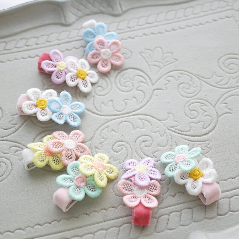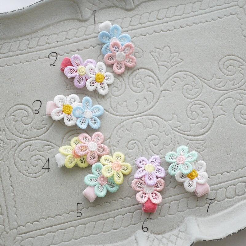 犬 猫 アクセサリー【パステルフラワーのヘアクリップ】いぬ ヘアピン ドッグアクセサリー ペット用 クリップ 可愛い フラワー かわいい おしゃれ 日本製 小花 プレゼント 小型犬 超小型犬 チワワ 犬 日本製 かわいい ねこ トイプードル ダックス 中型犬 猫 犬グッズ 透け感のあるカラフルなカラーのお花の刺繍クリップ。わんこの細い髪を挟める、軽くて滑り止め付きの小さなペット向けアクセサリー。プチギフトに喜ばれるヘアクリップです。 ピンの長さ:4cm全長:4.5cm淡いお色のお花モチーフのクリップ色です。やわらかいライトな色味が、さまざまな毛色のペットちゃんにぴったり。1つ使いで、可愛いアクセントに。多頭飼いで色違いにも。プチギフトにもおすすめ。滑り止め付きベビーヘアクリップ付きです。柔らかな毛をやさしく挟み、滑り落ちません。ロケーションフォト、わんこフォト撮影会など、季節に合わせてご使用いただけます。【関連カテゴリー】ペットアクセサリー ドッグアクセサリー ドッグチョーカー わんこ撮影会 猫 ねこ 兎 ウサギ 卯年 卯年年賀状 ペットアクセサリー ペット花冠 ペット用はなかんむり おうちフォト ペットフォト フォトスタジオ フォトグラファー 2