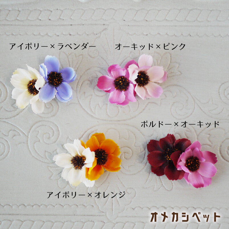 犬 花 ピン 秋 頭 ぱっちん 全犬種 うちの子 可愛い 頭飾り トトロ 落ちない 【ブンブン取れない2colorコスモスのコームピン】 アクセサリー パッチン留め マルチーズ 軽量 トリミング お出かけ トイプー ペット用 わんちゃん 帽子 お散歩 小型犬 超小型犬 オメカシペット 二色のコスモスがペットの頭に咲く可愛いヘアピン。ぶんぶんしても取れません。お出かけにおすすめ。負担の少ないのコームピンです。しっかりとまるのでお散歩にも。 イベントで大人気のブンブンしても取れないシリーズのペットヘアピンです。ウィッグ用のぱっちんコームピンを使用していますので、走り回ってもブンブンしても取れません。少ない毛でもしっかり挟みます。お出かけしやすい秋に。季節感ある配色です。※こちらは1点分の価格です。わんちゃん、ねこちゃん用のフラワーヘアピンです。軽いタイプで、お散歩の邪魔にもなりません。毛をしっかり挟むので、走っても安心です。【サイズ】ピンの長さ:3cmモチーフの大きさ:縦cm、横cmお出かけフォトにも。お誕生日などのイベントやおうちフォトなど、SNS用のお写真用に。【関連カテゴリー】ペットアクセサリー ドッグアクセサリー ドッグチョーカー わんこ撮影会 猫 ねこ 兎 ウサギ 年賀状 ペットアクセサリー ペット花冠 ペット用はなかんむり おうちフォト ペットフォト フォトスタジオ フォトグラファー 犬和風 犬着物 犬浴衣 ドッグフォト キャットフォト 日本 猫着物 ねこちゃん フラワーアクセサリー ネネズデコ nenesdeco 春 夏 お散歩フォト 2