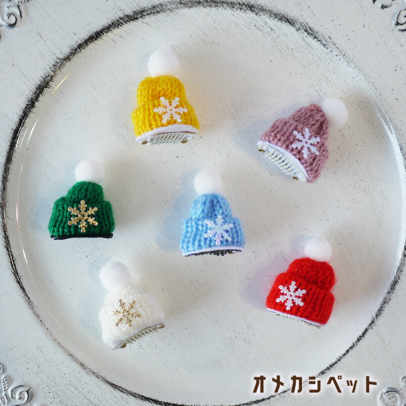 犬 帽子 アクセ 雪 飾り ドッグ 頭 りぼん 冬 コームピン パッチン 犬服 クリスマス 散歩 男の子【ブンブン取れない 雪の結晶のニット帽 コームピン】 ぱっちん ねこ 落ちない プレゼント 冬 小型犬 大型犬 チワワ 猫 dog お正月 耳飾 女の子 トイプードル 中型犬 猫 ペット