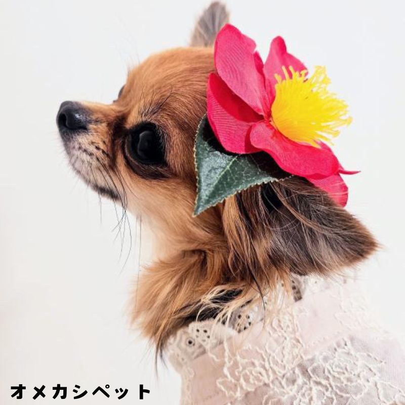 犬 花 飾り 着物 頭 冬 椿 ドッグ 【ブンブン取れない ツバキのコームピン】 お正月 オメカシ りぼん ぱっちん ねこ 落ちない プレゼント 冬 小型犬 大型犬 チワワ 猫 dog 耳飾 女の子 トイプードル 中型犬 猫 ペット 頭 リボン コームピン 犬服 散歩 男の子
