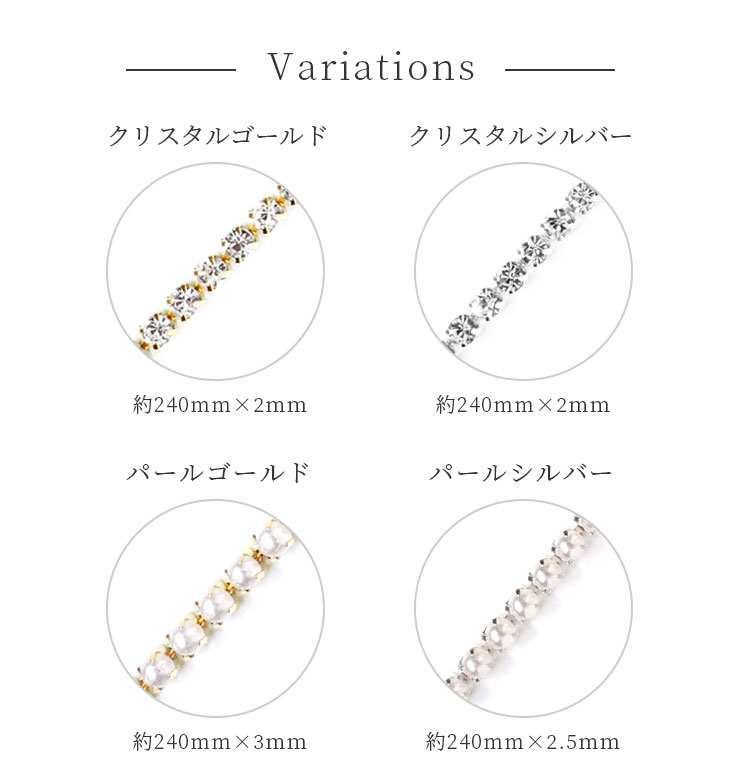 ラインストーンチェーン 2.0〜3.0mm幅 選べる4タイプクリスタルチェーン チェーンスタッズ